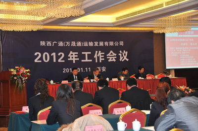 2012年1月11日,陜西廣通運(yùn)輸發(fā)展有限公司、陜西萬晟通實業(yè)有限公司2012年工作會議在西安悅豪酒店隆重召開。陜煤運(yùn)銷集團(tuán)公司總經(jīng)理助理、運(yùn)輸中心主任譚志軍,陜煤炭運(yùn)銷集團(tuán)公司財務(wù)部經(jīng)理、廣通公司財務(wù)總監(jiān)和學(xué)謙,廣通公司董事長、萬晟通公司董事長任曉鵬,廣通公司總經(jīng)理、萬晟通公司董事長助理沈來萬,萬晟通公司總經(jīng)理孟立新,陜煤炭運(yùn)銷集團(tuán)公司運(yùn)輸中心王江,以及廣通和萬晟通公司的員工代表共九十多人參加了此次會議。會議由廣通公司常務(wù)副總經(jīng)理張益銘主持。